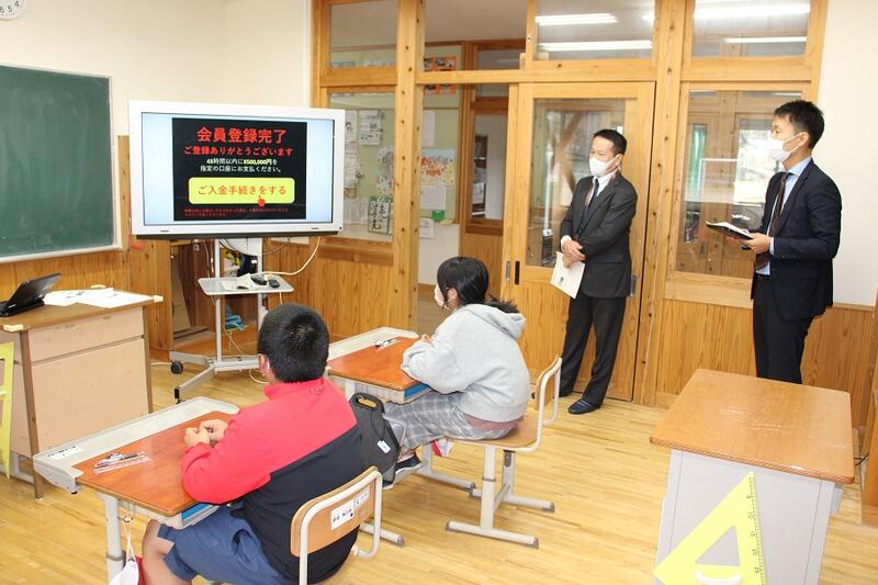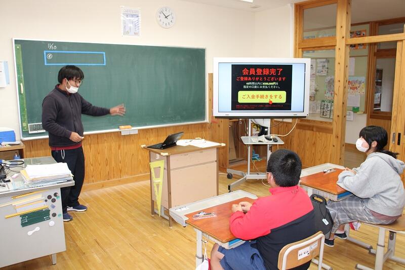 5・6年生です。5・6年生は、「架空請求から身を守るために気をつけること」を話題にした授業を行いました。