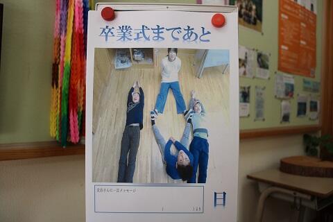 先日、卒業式まであと何日の掲示を体を使って表し、それを掲示していくことをお伝えしました。