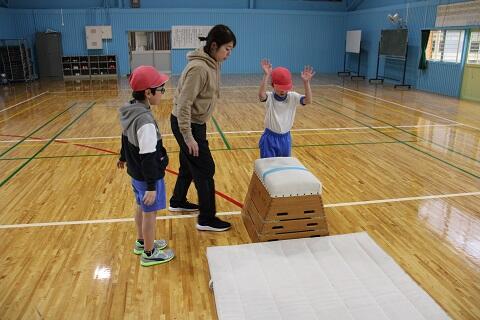 見事!二人とも跳べました。何度もこれを繰り返して、跳び越える感覚とイメージを・・・・