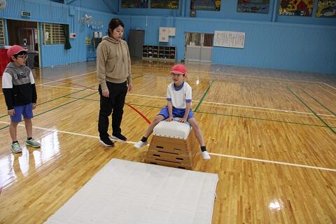 手で支えて跳ぶという感覚をつかませるために、まずは人を跳ぶことから始めるのがいいです。