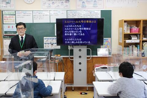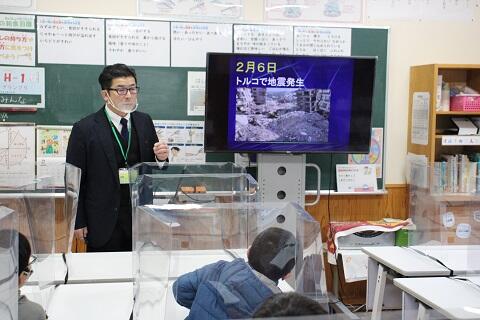 校長先生から、2月6日に起きたトルコ・シリア大地震についてのお話がありました。今回のお話は、これまでの日本とトルコの関係に焦点を当てられました。