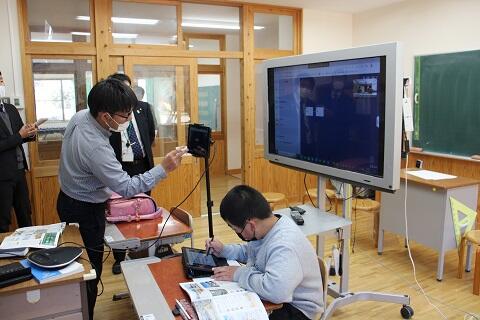 こちらは、5年生の社会です。不土野小の先生が授業を進めるので、今日はこちらをメインで参観していただきました。