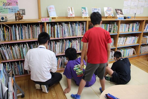 これは図書・放送委員会が本棚の整頓をしているところです。