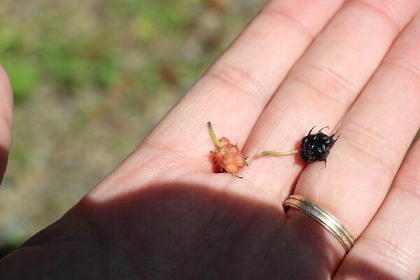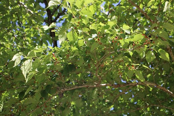 こんな木の実がなっています。クワの実に似ていますが・・・ちょっと違います。味は甘酸っぱいです・・・(^^;)