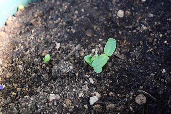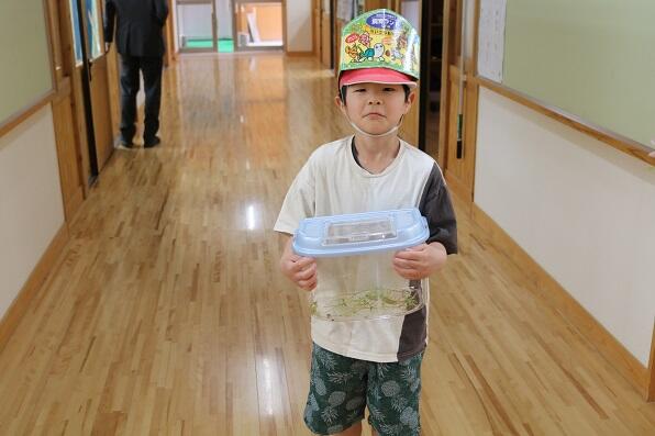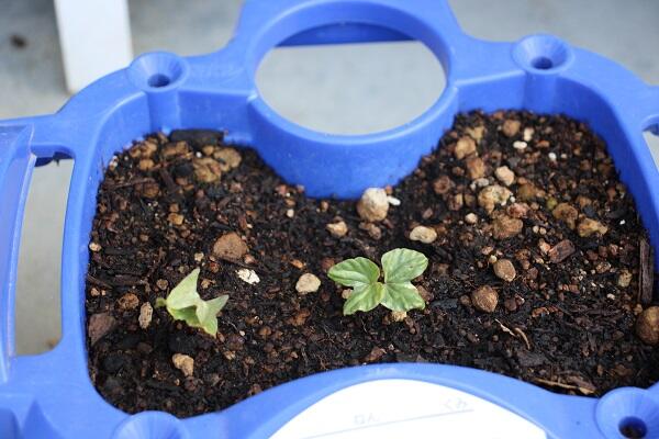 1年生が育てているアサガオの芽が出ていました。順調です(^^)