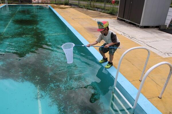 プールにいるオタマジャクシをとっているところですが、プールに落ちなくてよかったです(>_<)