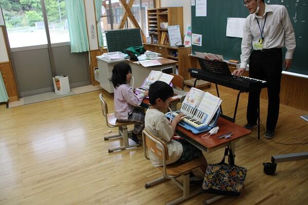 1・2年生は、鍵盤ハーモニカの練習をしていました。