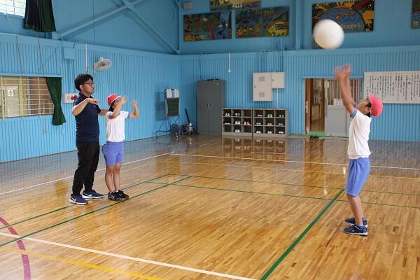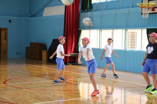 5・6年生は、体育館でミニバレーの練習をしていました。