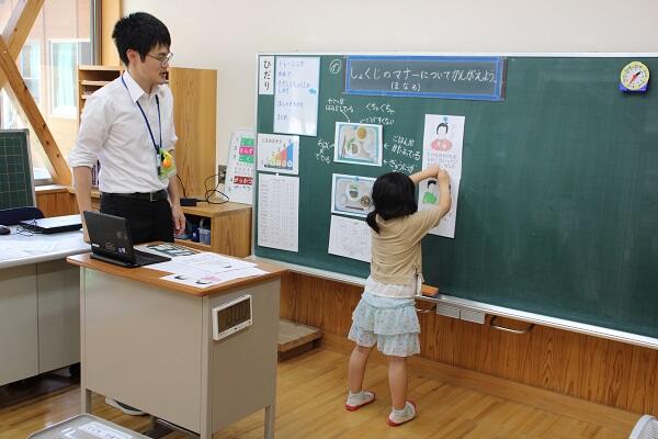 1年生は、食事のマナーについて先生と一緒に考えました。