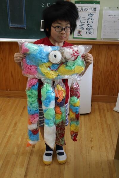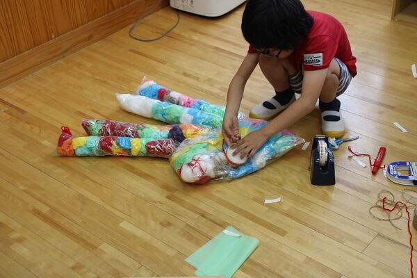 こちらは3年生です。ビニールの中に何か詰め込んでいます。