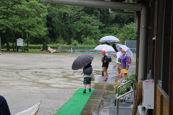 風雨が激しい場合には、昨年度のように保護者の方々に連絡し、お迎えに来ていただいたり、学校に待機したりすることになります。