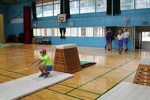 体育館で2・3年生が跳び箱運動をやっていました。