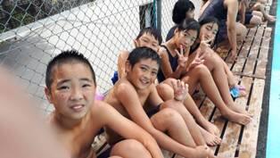 今日は、椎葉村内の5・6年生が椎葉小学校のプールに集まり、体育