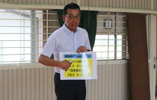 今日の業間の時間に、秋の公民館との合同運動会に向けて結団式を