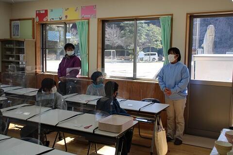 不土野小の給食は、尾向小の調理員さんお二人が調理されています。他にも豆腐やパン、牛乳などを生産されておられる方々、栄養教諭の先生に日頃の感謝の気持ちを込めてメッセージカードをお渡ししました。