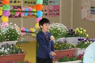 【 入場アーチを花できれいに 】    【姉と弟が妹のために教室装飾!】
