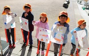 さつと、自分達が作った凧のお披露目をしてくれました。あいにく風が