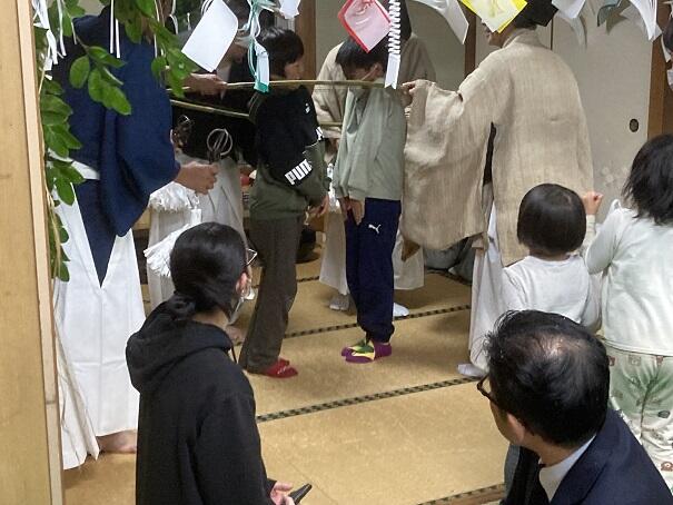 11番「弓通し」です。赤ちゃんから小学生が主に弓をくぐり、最後に大きな声で驚かされます。小さい子は泣き出すほどです(^^;)