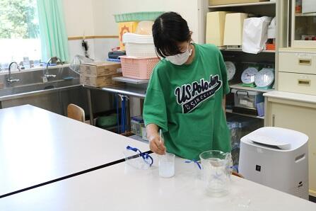 今度は、試験管に移しています。う~ん・・・駒込ピペットの使い方の練習かな・・・・? 水溶液の学習は十分に気をつけて慎重にやらないといけないです。