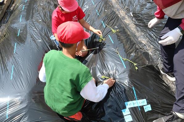 子どもたちはサツマイモを植えるだけですが、こういった地域の方や先生方のおかげでサツマイモを育てることができるということに感謝しないといけませんね。
