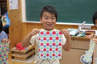 和紙に色をつけ、広げてその模様を楽しむ学習でした。3人とも素敵な