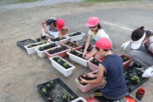 植え替えが終わった後は、水をたっぷりやって、今度はみんなで運動場