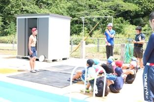 注意があった後、準備運動をしてプールに入りました。子ども達は久しぶ
