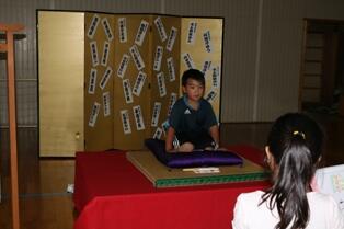 う演目の確認をしました。その後、1・2年生は体育館で落語の練習をし