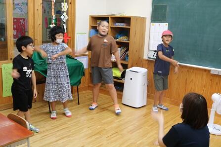 楽しい曲とダンスで先生も子供たちものりのりです・・・(^^;)