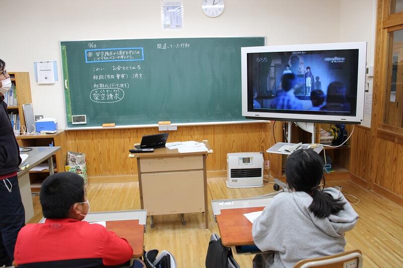 5・6年生です。5・6年生は、「架空請求から身を守るために気をつけること」を話題にした授業を行いました。