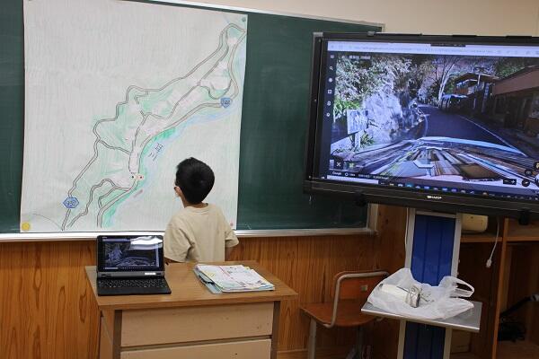 集合学習で予定されている「町たんけん」の前に、上椎葉のお店や公共施設などの場所を地図に表しています。