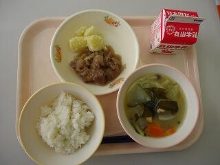 疲れた体に、豚肉としょうがで労ってくれそうな給食でした、。