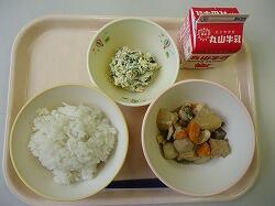 本日、大河内小との交流学習のため給食は大河内小学校にて。