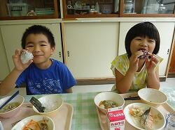 今日は村内一斉のおにぎり献立です。学年に応じた
