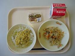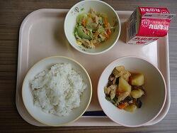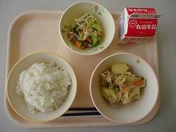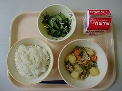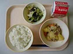 麦ご飯・じゃがいものそぼろ煮・甘酢和え・ふりかけ