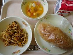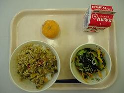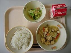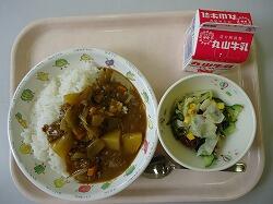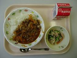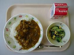 給食の王様「カレーライス」になんと「フルーツミックス」がついていました。