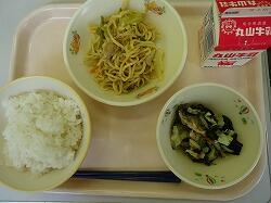 減量麦ご飯・やきそば・ほうれん草サラダ