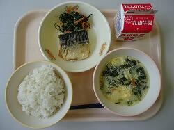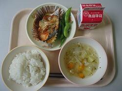 麦ご飯・野菜スープ・さばごま味噌煮・もやし