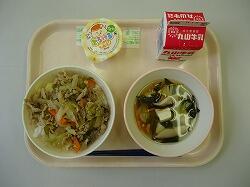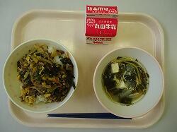 麦ご飯・かき玉汁・豚肉と厚揚げのみそ炒め
