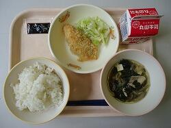 麦ご飯・冬瓜スープ・魚の甘辛あげ・きゅうり
