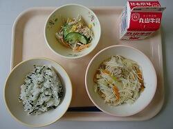 減量ゆかりご飯・ワカメうどん・レンコンのマヨネーズ和え