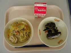 萩ごはん・かき玉汁・さばのみぞれ煮・もやし