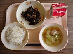 麦ご飯・肉団子スープ・ひじきと大豆の炒め煮