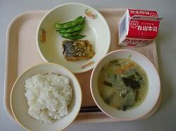 麦ご飯・わかめスープ・魚のみそマヨネーズ焼き・枝豆