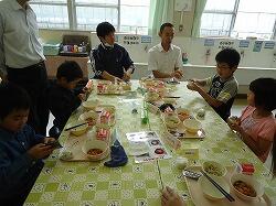 毎回希望があり、子ども達と一緒に給食を食べてもらっています。