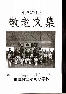 敬老文集を発行しました。12人の子どもたちが、自分たちのおじいちゃんやおばあちゃん、地域に住む高齢者の方々に対して、心をこめて書いた素敵な文集です。21日は敬老の日です。日頃、大変お世話になっている高齢者の方々に、感謝し長寿を祝う気持ちを、言葉や行動であらわせるといいですね。