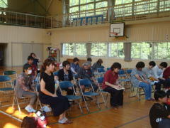みんな真剣に聞いていました。保護者の皆さん、おじいちゃん・おばあちゃん、地域の方も来てくださいました。