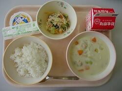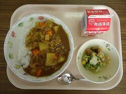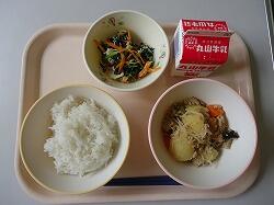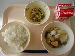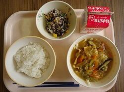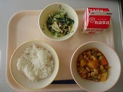 本日、大河内小との交流学習のため給食は大河内小学校にて。