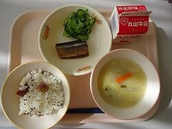 さつまいもご飯・五目汁・鰯の甘露煮・もやし