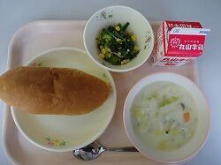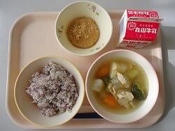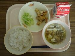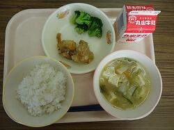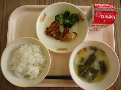 麦ご飯・とうきび汁・鶏唐揚げ・ブロッコリー